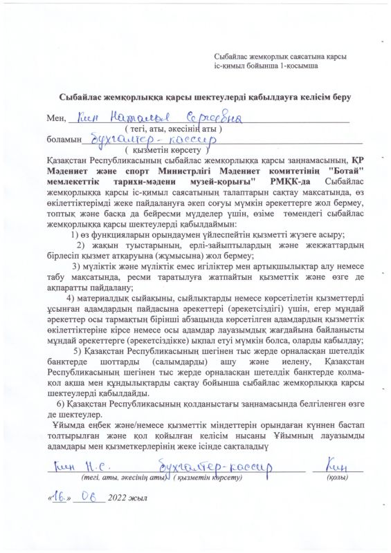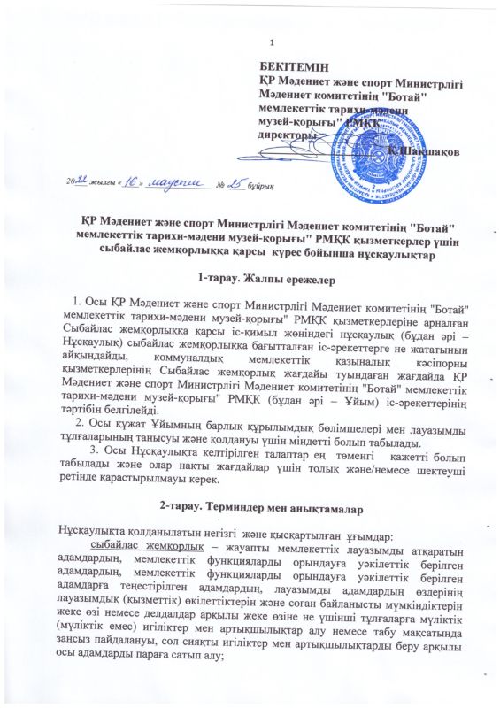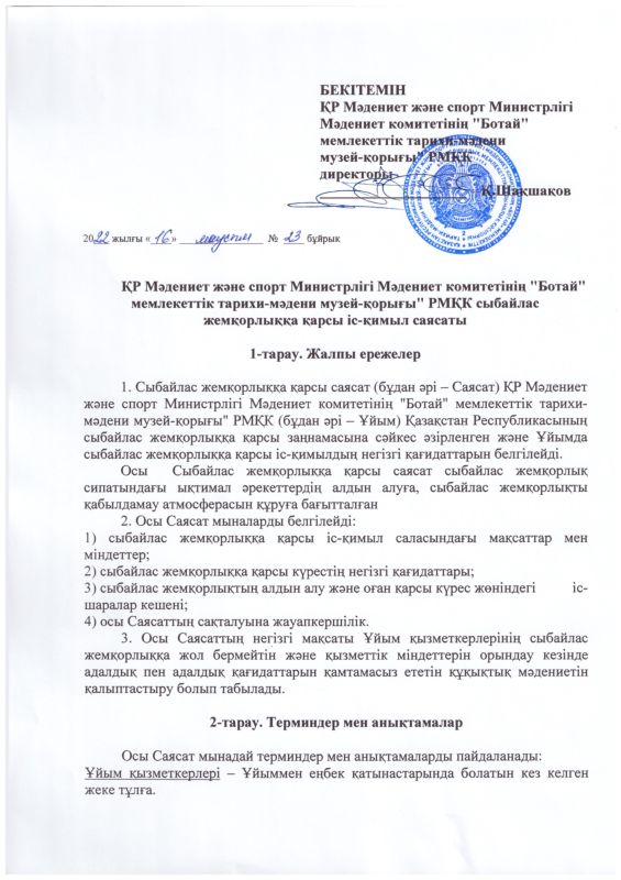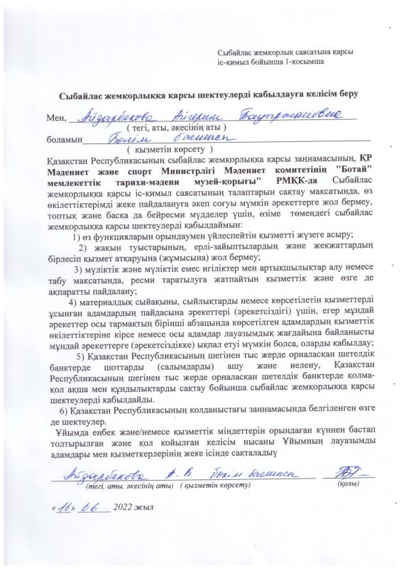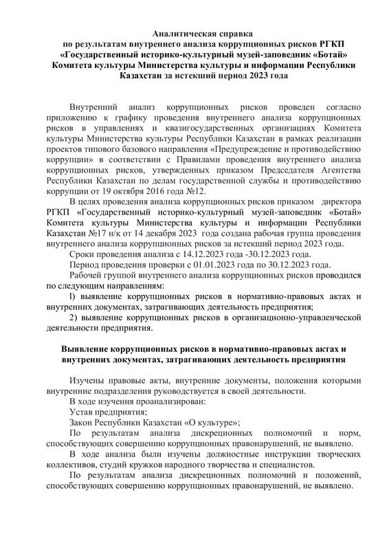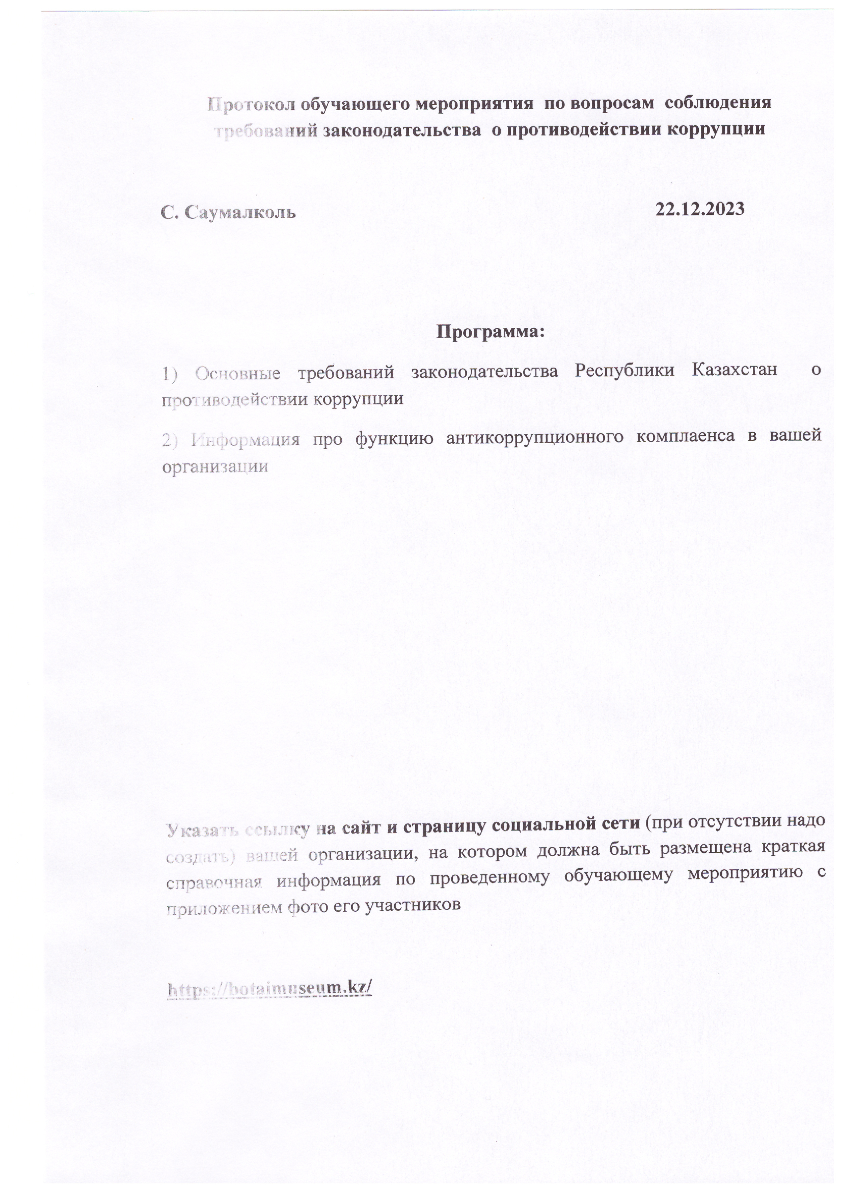 22 декабря 2023 года в Государственном историко-культурном музее - заповеднике «Ботай» было организовано обучающее мероприятие по вопросам соблюдения требований законодательства о противодействии коррупции.