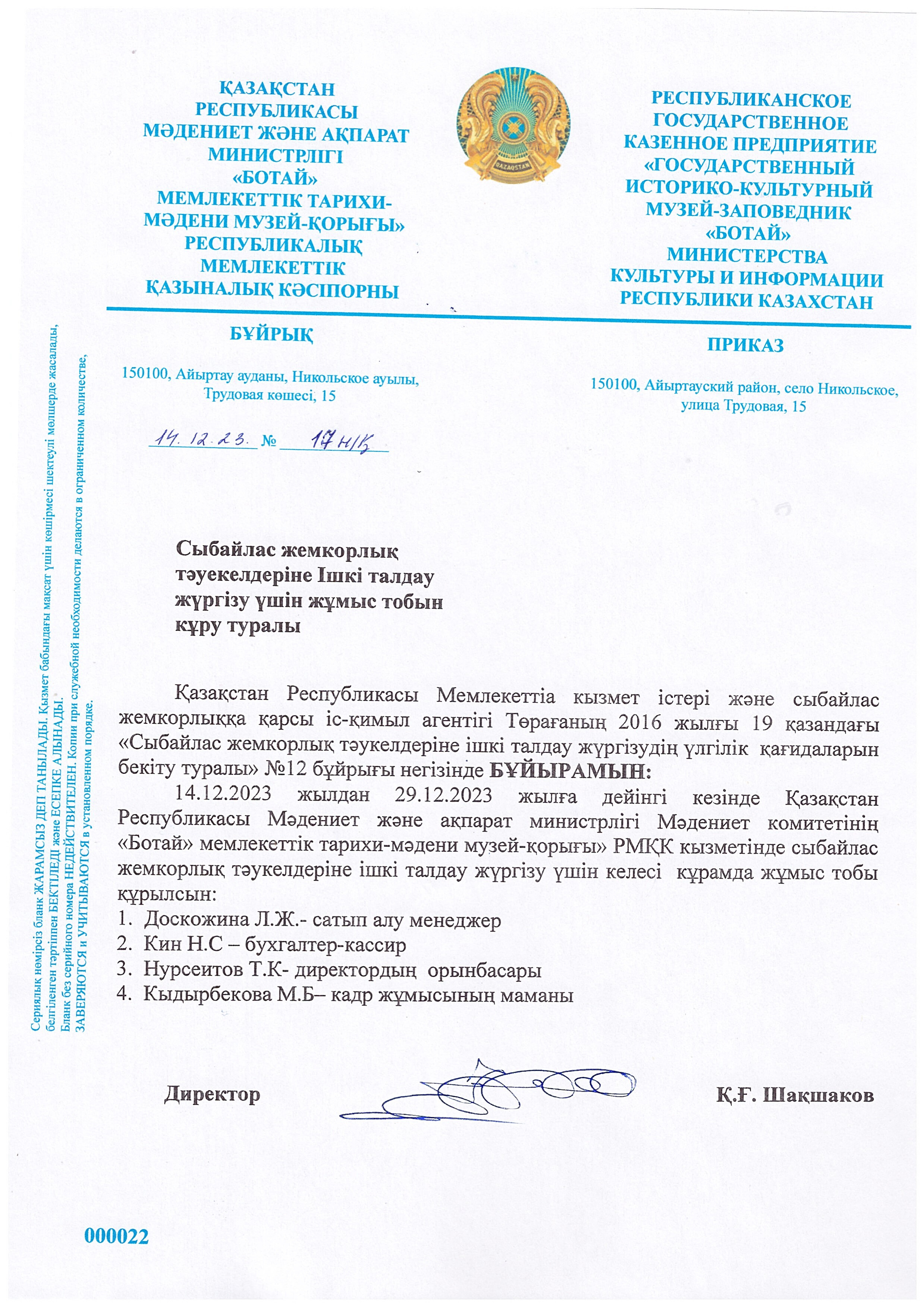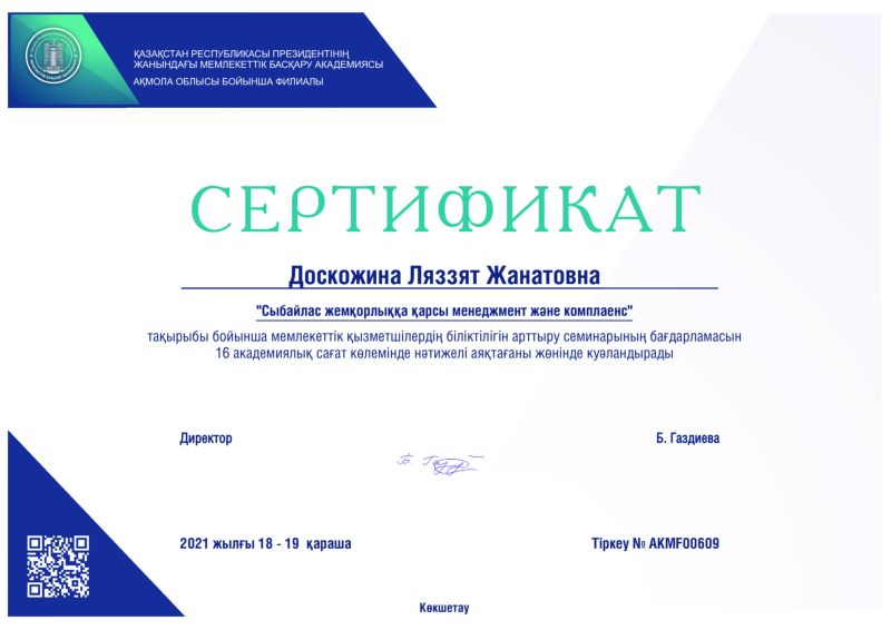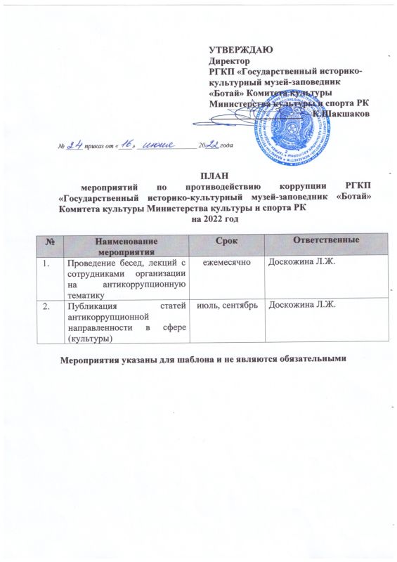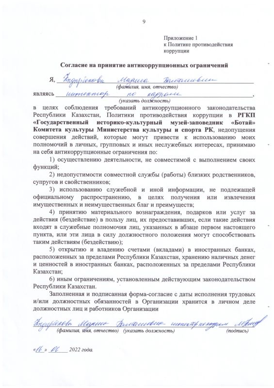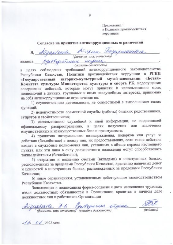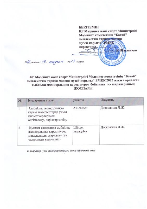 22 декабря 2023 года в Государственном историко-культурном музее - заповеднике «Ботай» было организовано обучающее мероприятие по вопросам соблюдения требований законодательства о противодействии коррупции.