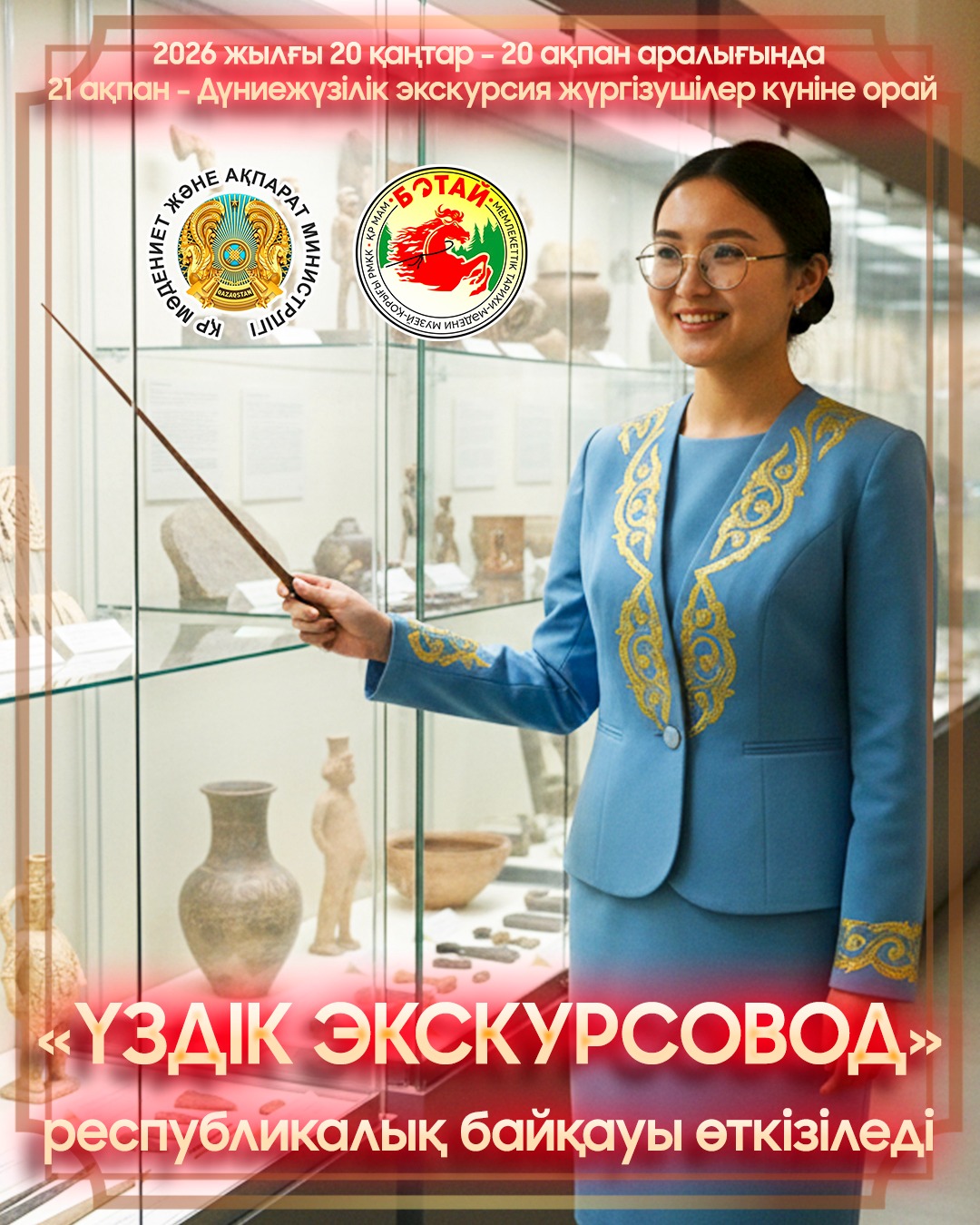 21 ақпан - Дүниежүзілік экскурсоводтар күніне орай, Ботай музей-қорығында 20 ақпан күні «Үздік экскурсовод» республикалық байқауы ұйымдастырылады.