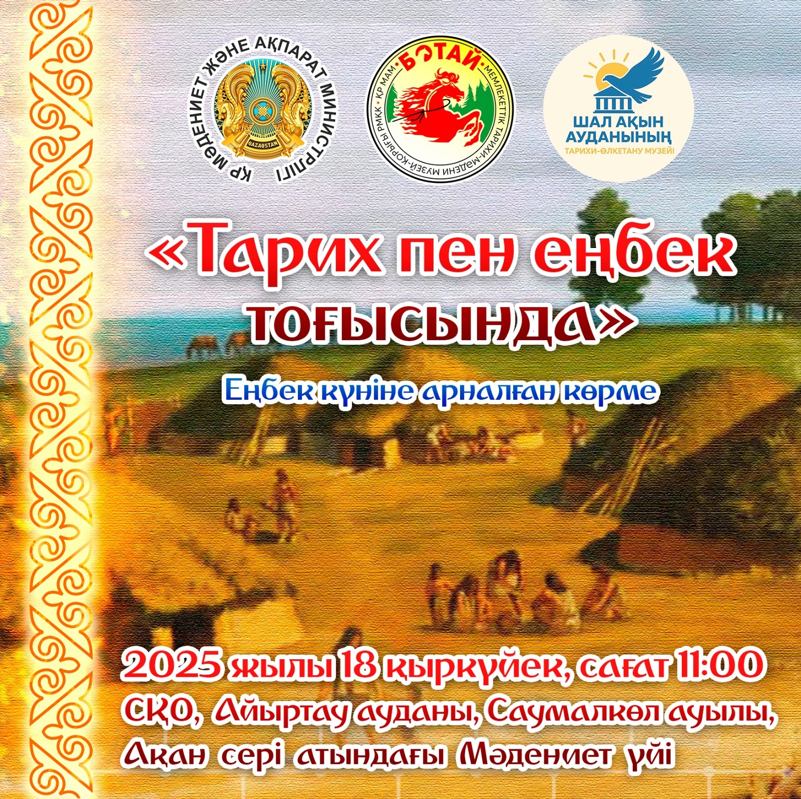 «Ботай» музей-қорығы Саумалкөл ауылы, Айыртау ауданындағы Ақан Сері атындағы Мәдениет үйінде жұмысшы мамандықтарына арналған көрмеге шақырады.