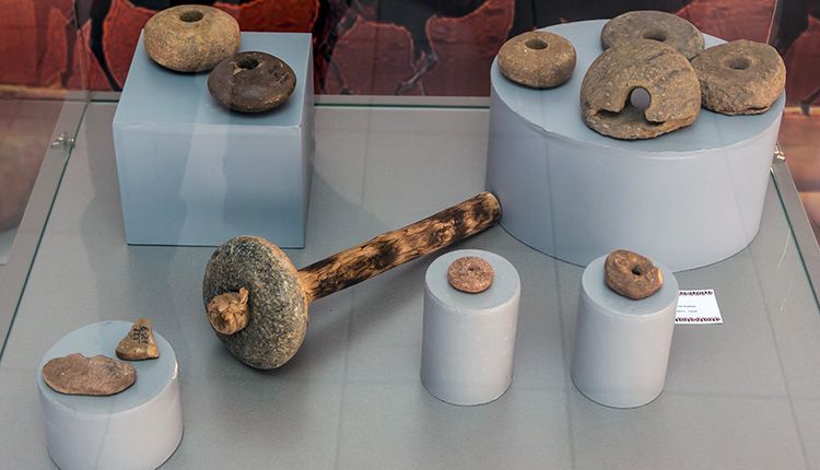 Археологическую выставку представила экскурсовод историко-культурного заповедника-музея «Ботай» Айгерим Айдарбекова. В экспозиции — старинные предметы быта и орудия труда: каменные ножи, топоры, молотки, тесаки, диски, провертки, тесла, терочники, песты, фрагменты каменной посуды, а также наконечники дротиков, копий и стрел. И даже сверлильный деревянный станок для изготовления дисков. Что характерно еще для той эпохи — на стенках многих каменных и медных сосудов учеными были обнаружены жировые молекулы кумыса. Это еще раз подтверждает, что уже тогда ботайцы умели доить кобыл, и лошадь была домашним животным.