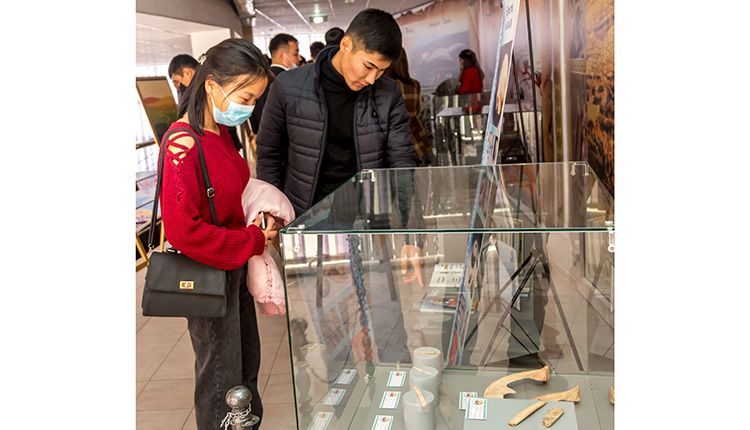 На выставке представлено около 200 экспонатов, в том числе археологических ценностей эпохи энеолита — меднокаменного века, переходного периода к бронзовому веку. Возраст этих находок — более шести тысячелетий. В Казахстане это время известно под названием Ботайской цивилизации.