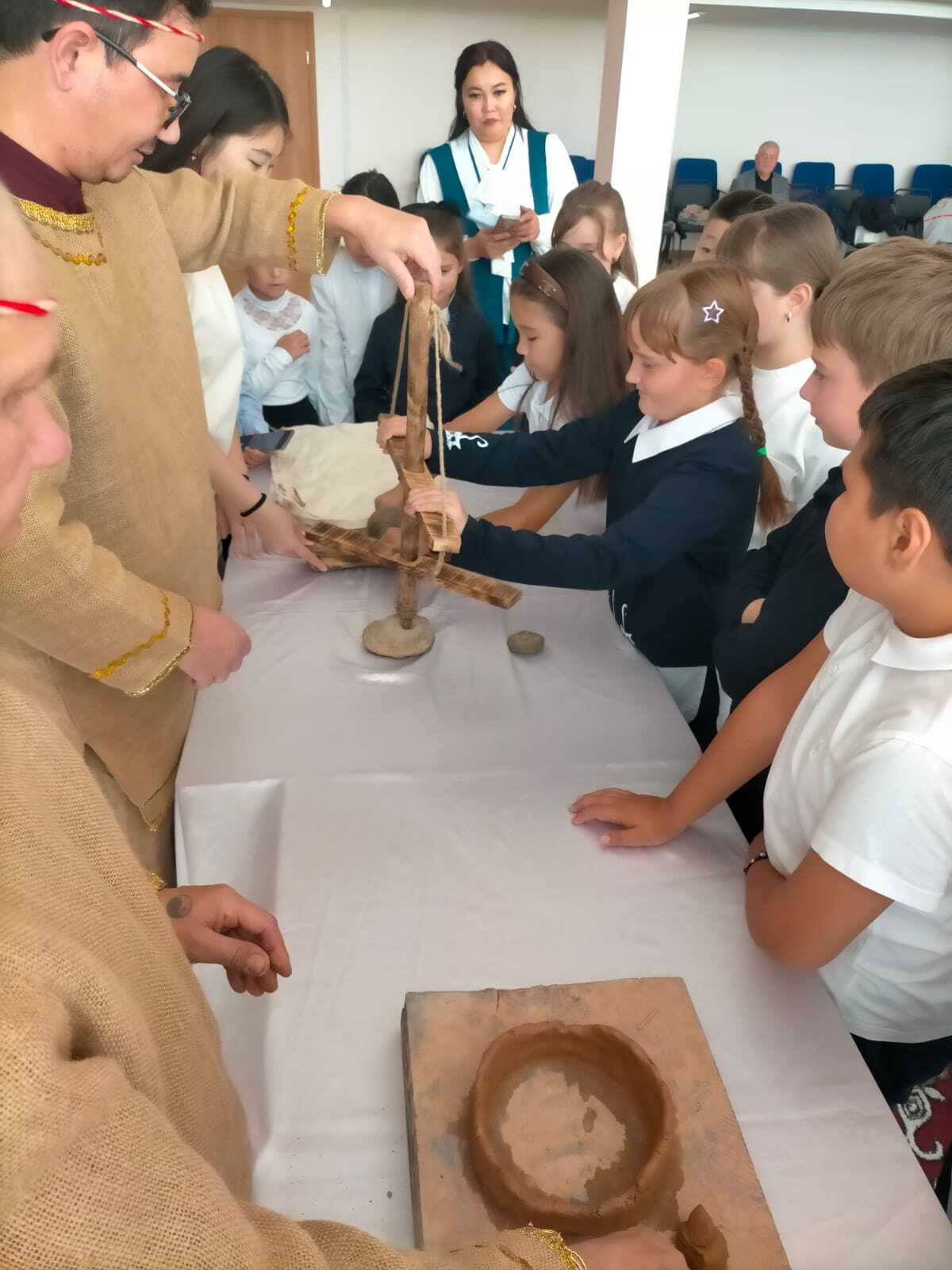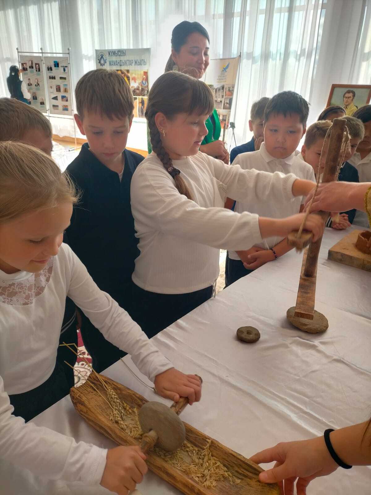 Мастер-классы, посвященные жизни древних ботайцев, каменные орудия труда ботайцев,такие как; топоры, ножы, каменные диски, ценные экспонаты районного историко-краеведческого музея Шал акына, рассказывающие об истории труда района. Среди них тракторы, строительные машины, электрооборудование и шахтерские каски, также творческие работы воспитанников из Центра поддержки детей, нуждающихся в специальных социальных услугах и работы детей центра дополнительного образования Айыртауского района.