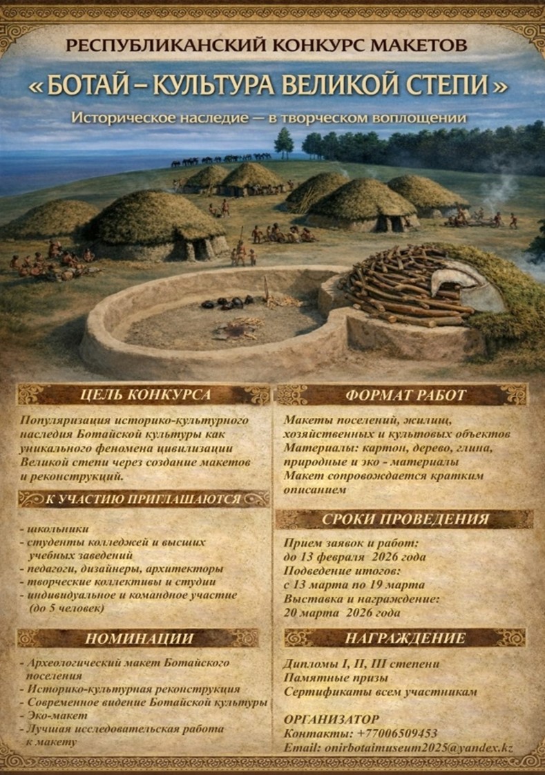 С 20 января по 20 марта, РГКП «Государственный историко- культурный музей - заповедник «Ботай» организует республиканский конкурс макетов