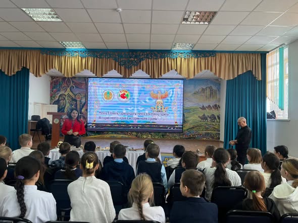 В ходе мероприятия школьникам был продемонстрирован видеоролик об истории поселения Ботай, рассказано о значении этой культуры для мировой истории, о первых жилищах и раннем одомашнивании лошади.
