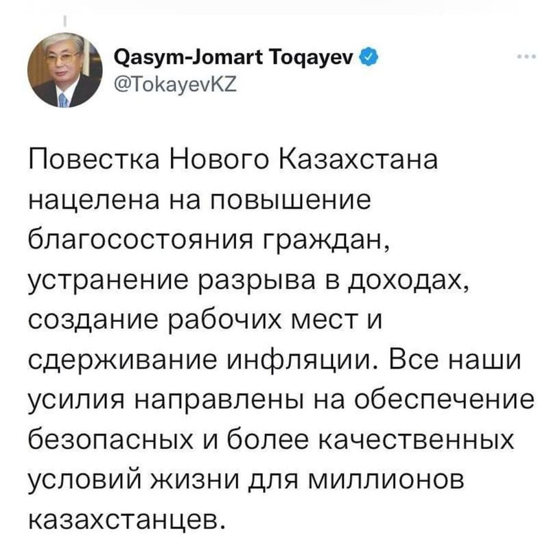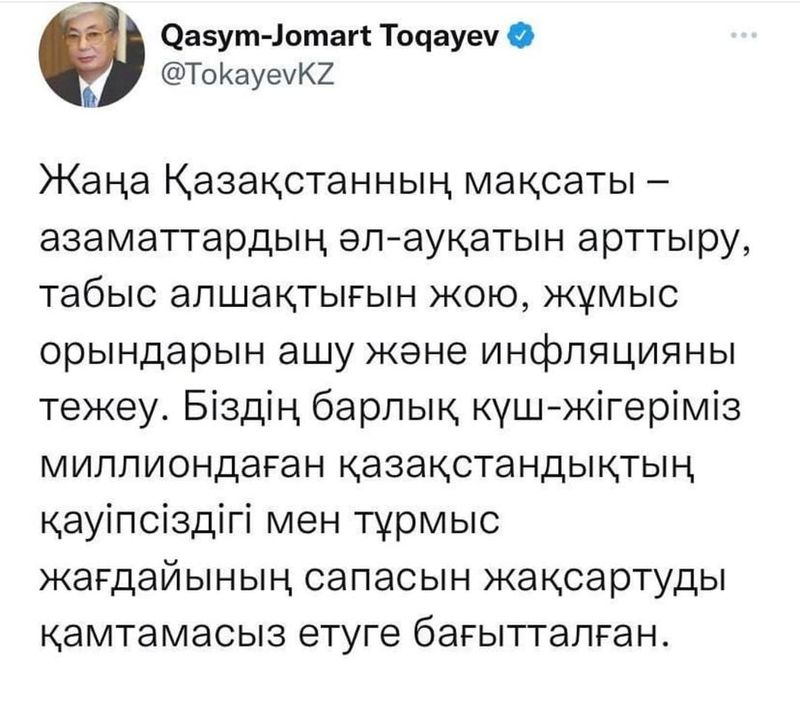 В последние дни мы, граждане Республики Казахстан, с особым вниманием слушаем выступления Главы государства Касым-Жомарта Токаева. Во всех его выступлениях озвучены важные аспекты политической и социальной позиции Республики Казахстан. На этой неделе состоялось еще одно значимое событие - встреча Президента с крупными предпринимателя, где он назвал январскую трагедию следствием проблем, копившихся в стране годами и Президент ясно дал понять, что в новом Казахстане большой бизнес сможет работать только по новым правилам: честно, прозрачно, справедливо и открыто.