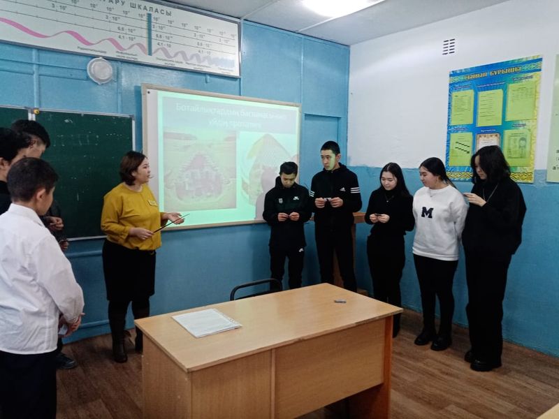 В ходе урока учащиеся подробно ознакомились с историей Ботайской культуры а также уникальными артефактами найденные на поселение Ботай.