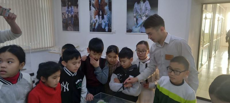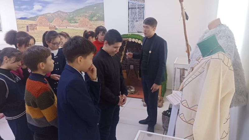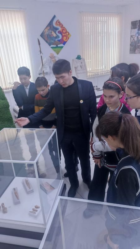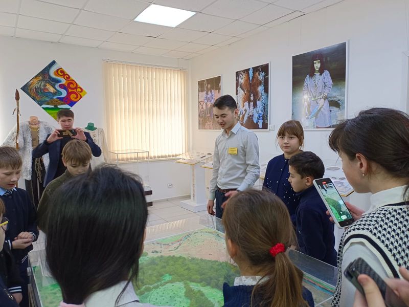 Учащиеся с большим интересом слушали экскурсию о ботайцах, живших в эпоху Древнего энеолита, о Ботайской культуре, получили много информации об уникальных артефактах, обнаруженных при археологических раскопках.
