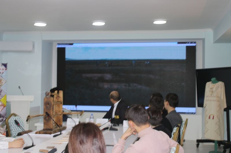 Вниманию студентов было представлено документальный фильм о реконструкции древних жилищ ботайцев, одомашнивании диких лошадей. Так же студенты интересовались одеждой древних ботайских женщин, инструментами, которыми они пользовались, домами, в которых жили.