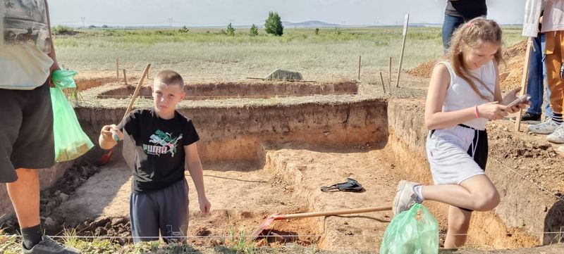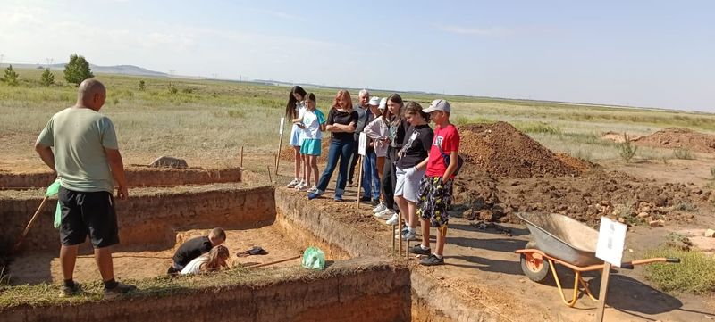Для школьников и учителей была организована экскурсия по поселению Ботай и возможность посмотреть процесс археологических раскопок.