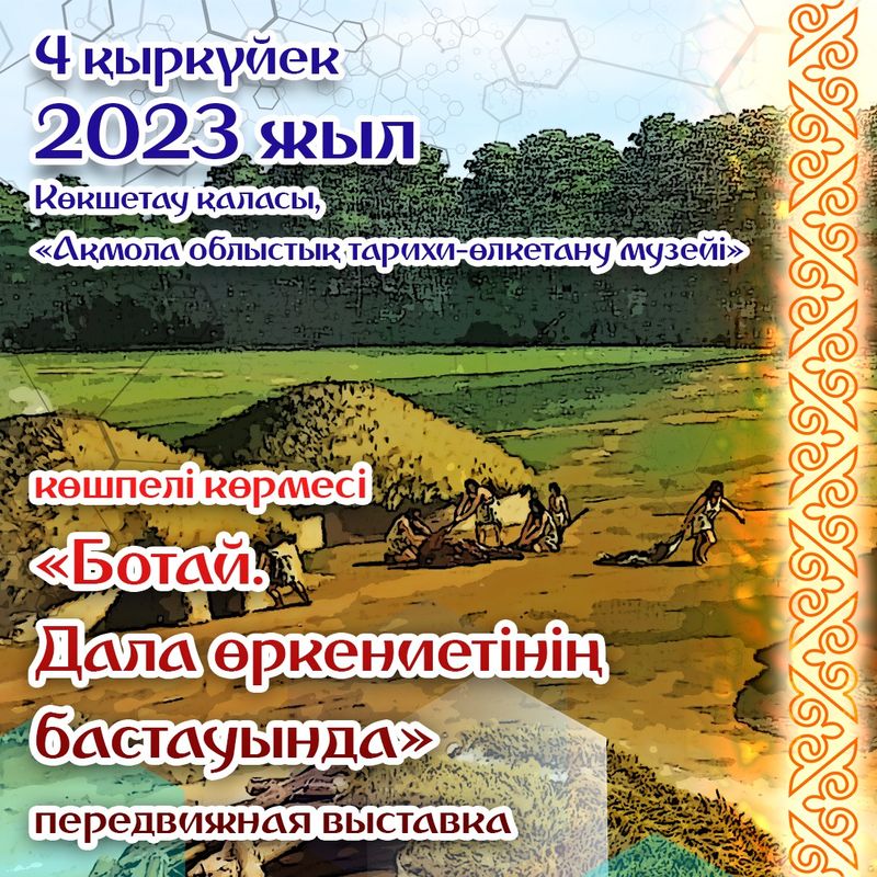 РГКП «Государственный историко-культурный музей-заповедник «Ботай» Комитета культуры МКС РК приглашает на торжественное открытие передвижной выставки «Ботай. У истоков степной цивилизации» которая состоится 4 сентября 2023года в Акмолинском областном историко-краеведческом музее г. Кокшетау.