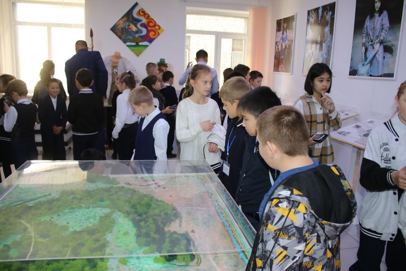 В ходе экскурсии была представлена инсталяция "Археологические исследования ботайской культуры", где учащиеся смогли окунуться в мир истории, поучаствовать в процессе археологических раскопок.